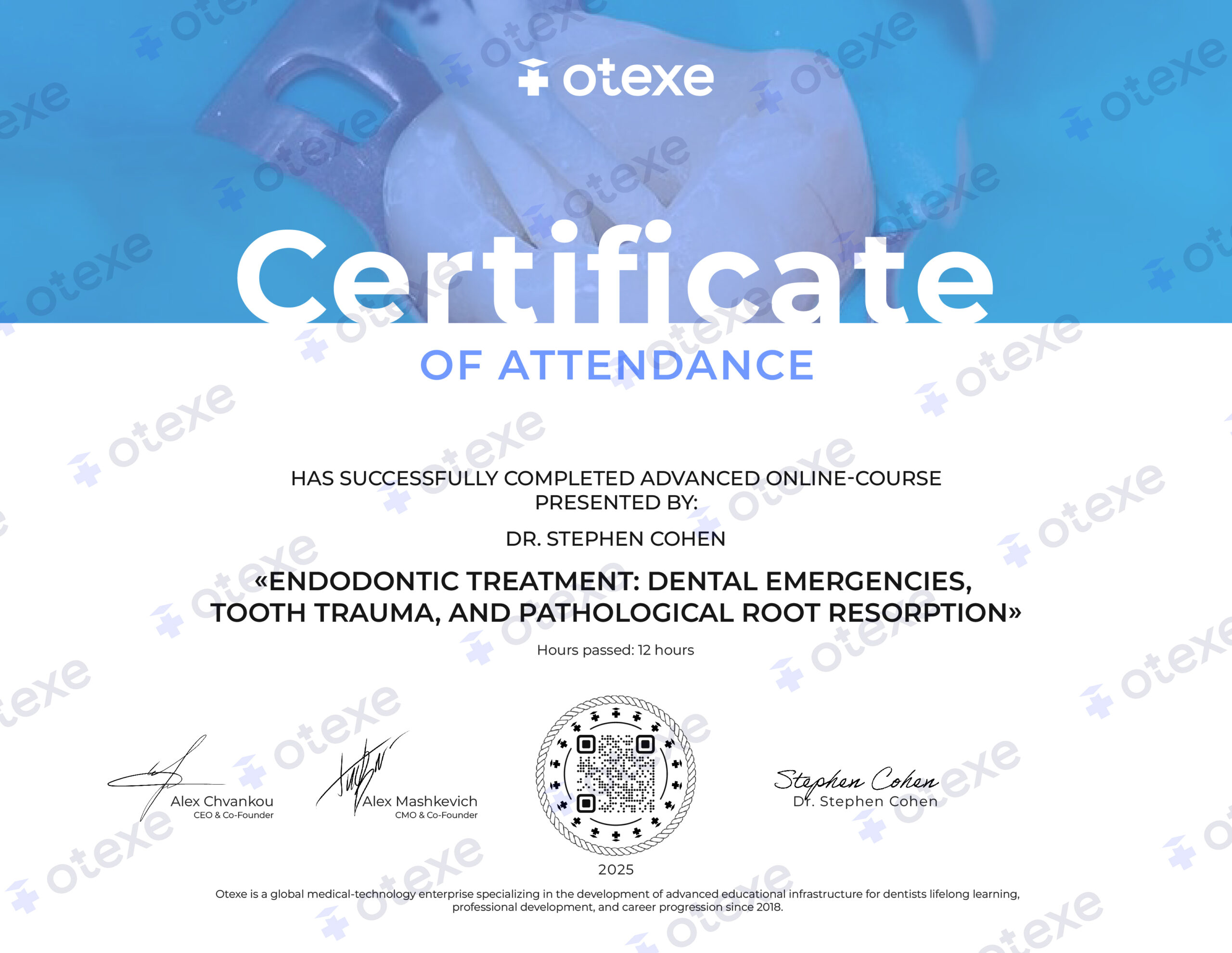 You can use this certificate to prove further training. For some courses, you also have access to international certificates accredited by ADA, CERP and CPD for CE/CME and CME scores.